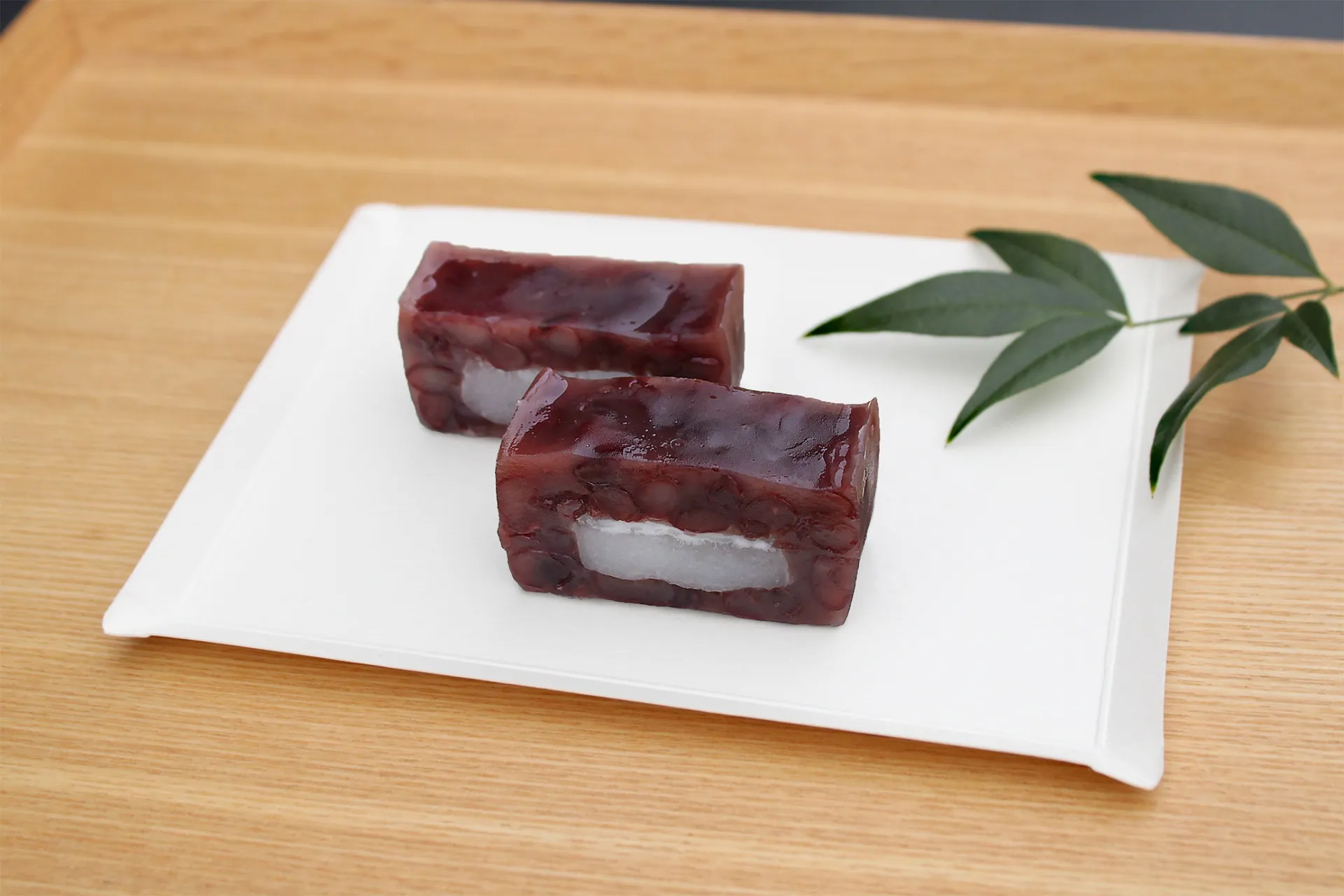 粒がつぶれぬよう熱の入り具合を見極め、「いい」加減に。羽二重餅はやわらか。小豆はやさしくほどけます。あもは〈あも・あも(こしあん)・季節あも〉から2種類お選びください。