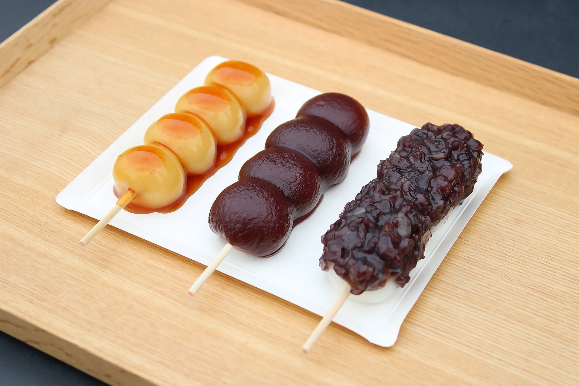 柔らかく口当たりの良い団子に叶 匠壽庵 特製の餡子と、甘辛いみたらし餡を絡め仕上げました。〈みたらし・こし餡・つぶ餡から 2種類お選びください〉