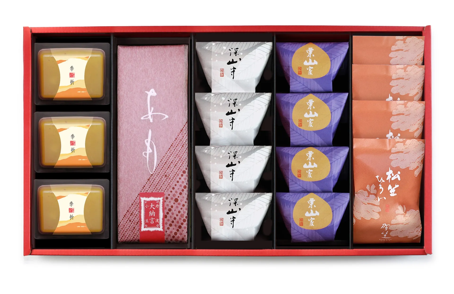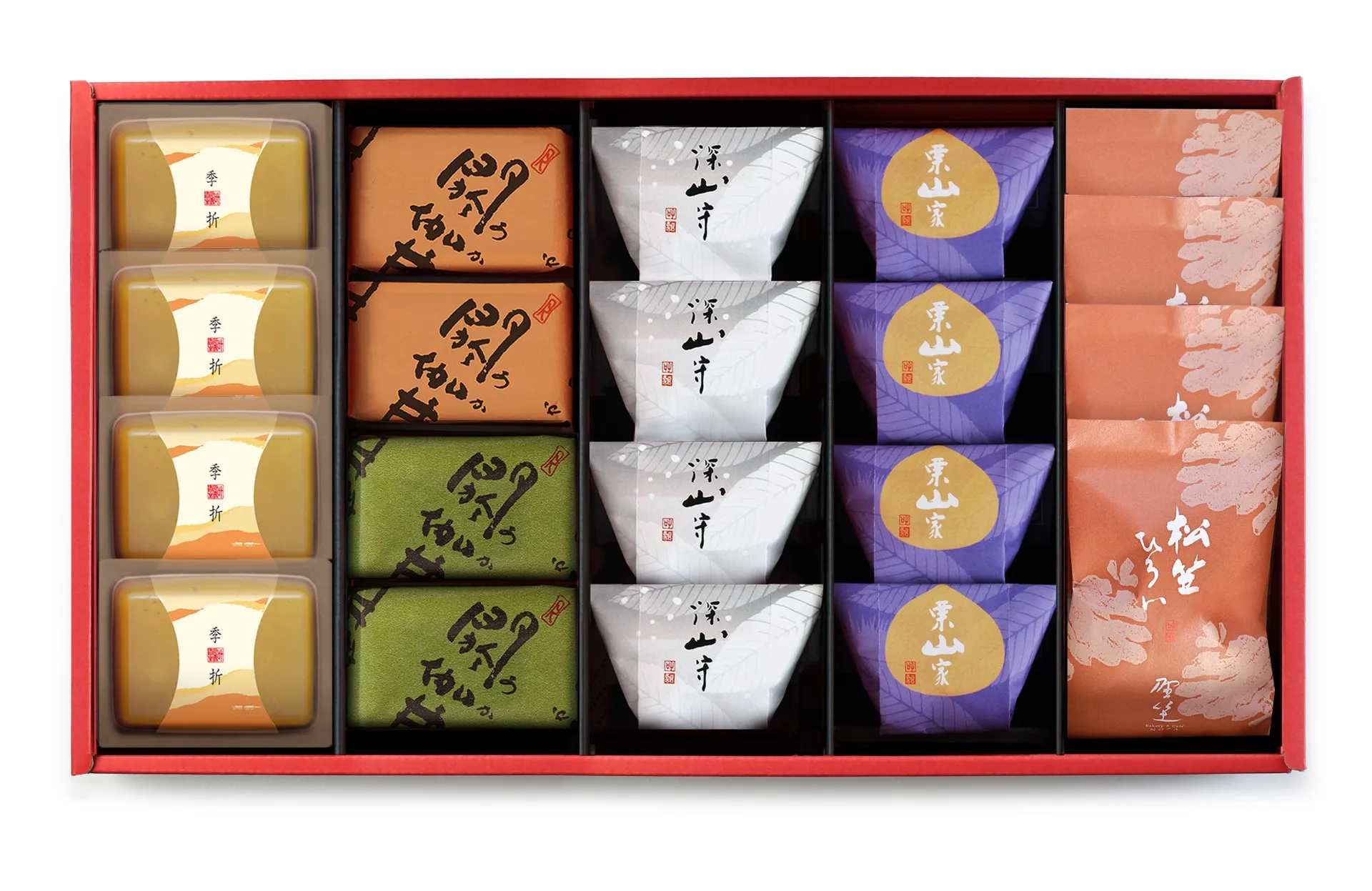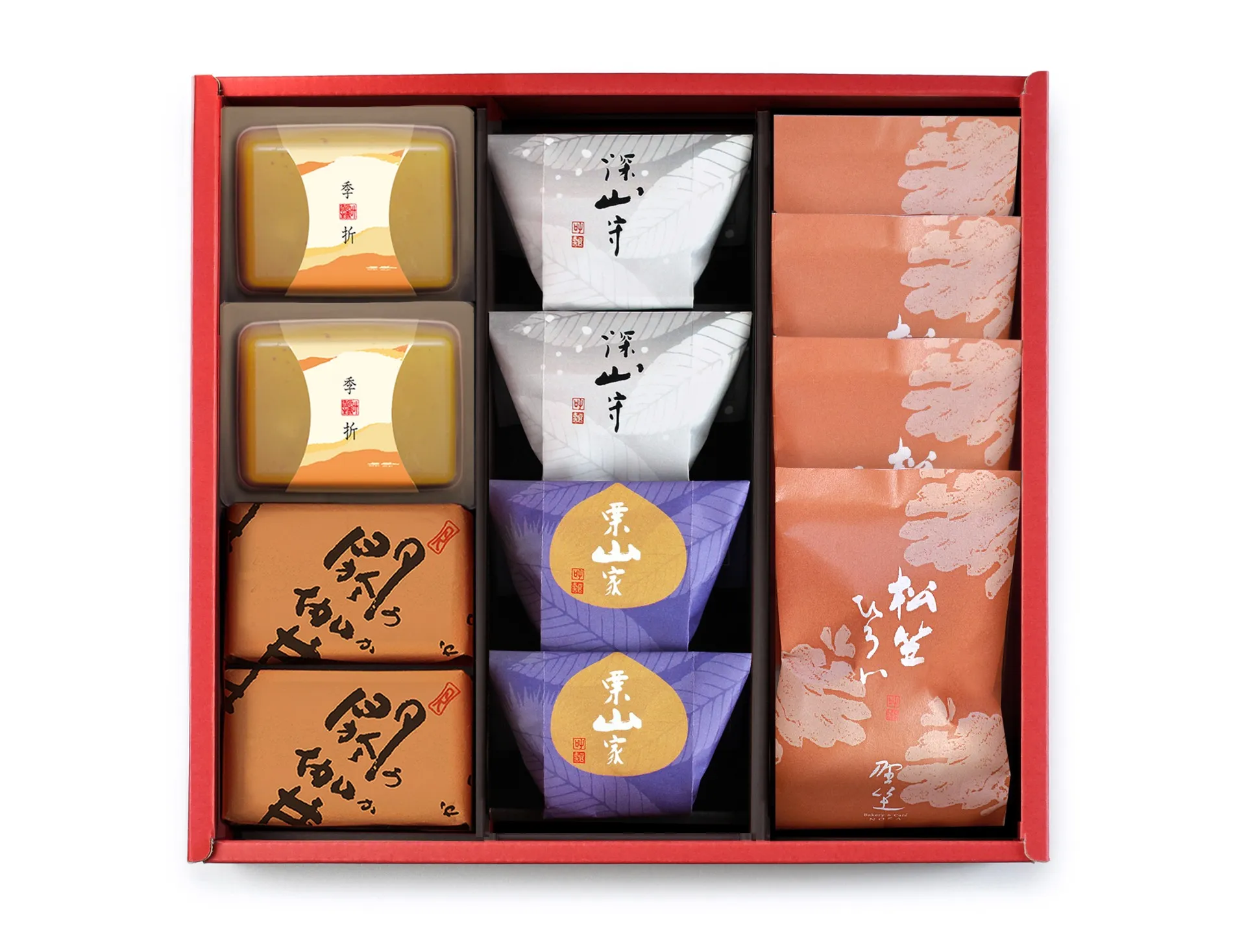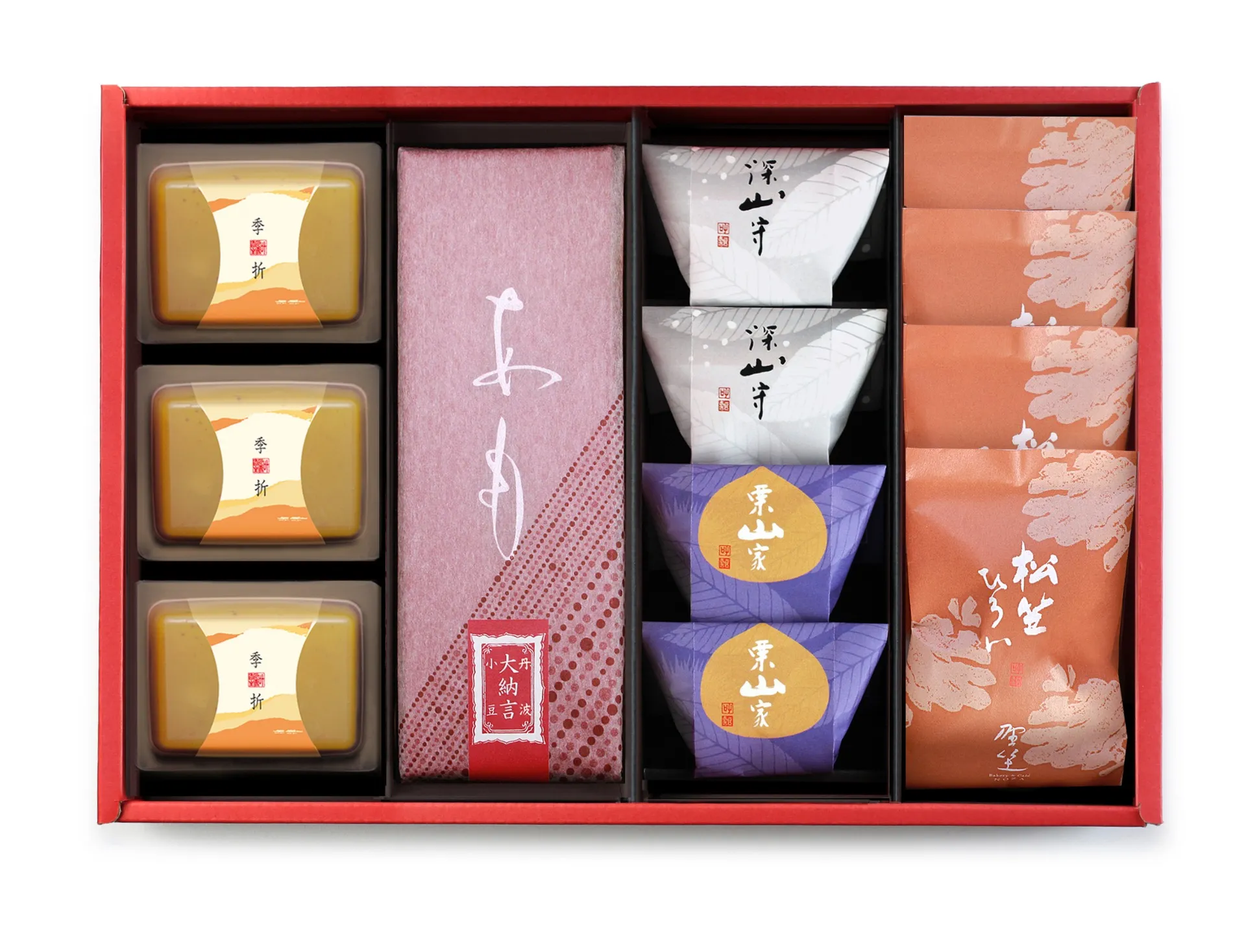 下段/松笠ひろい×4個、季折×4個、あも歌留多(最中種)×2箱