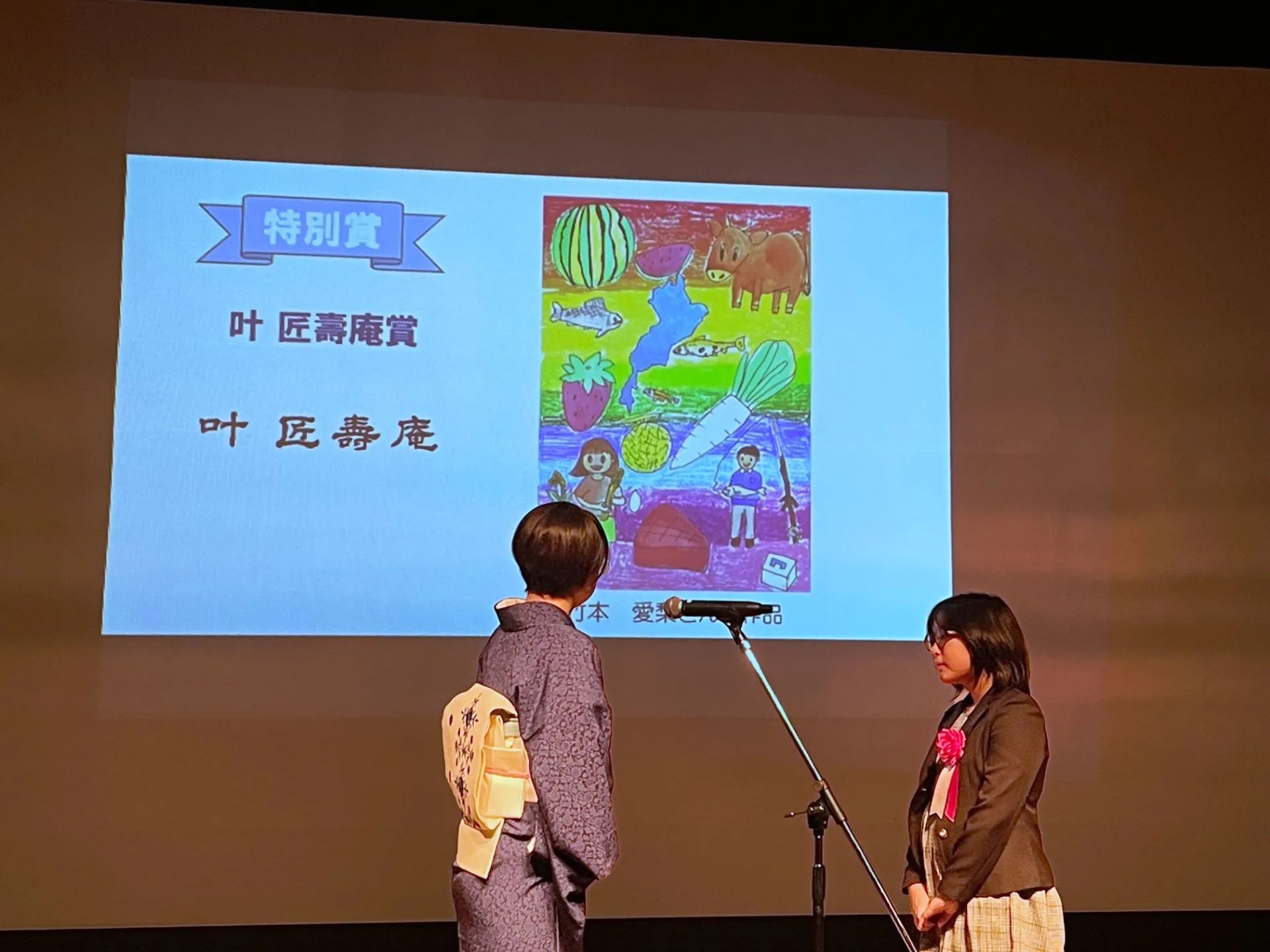 全46点の応募作品の中から特別賞(叶 匠壽庵賞)として、小学校6年生 竹本 愛梨さんの作品を選ばせていただき、12月7日に開催された表彰式に参加いたしました。