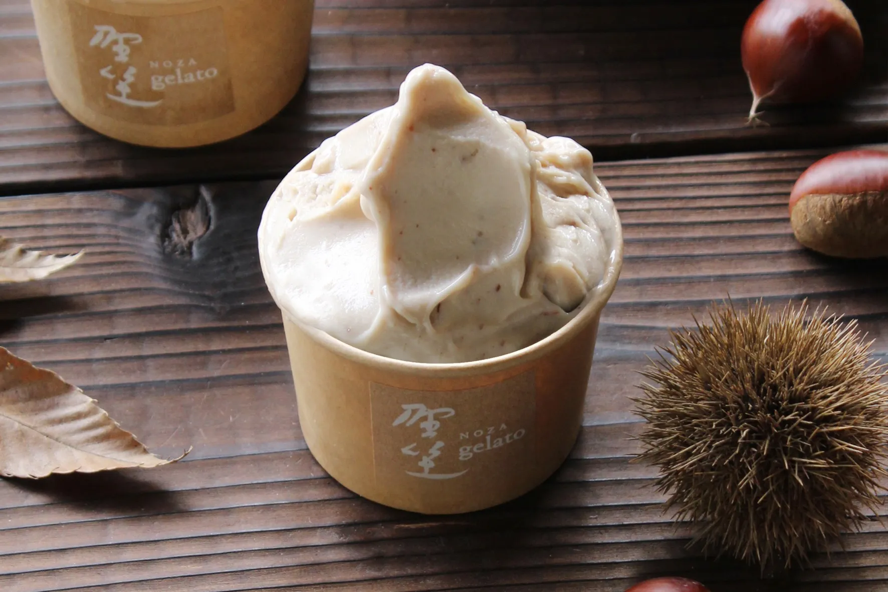 国産大豆を使用した豆乳ベースに、季節の素材を合わせた、叶 匠壽庵ならではのジェラート。季節限定「くりきんとん」ほか、あもまつり限定で「あもトッピング」も!※トッピングは里山館のみ可